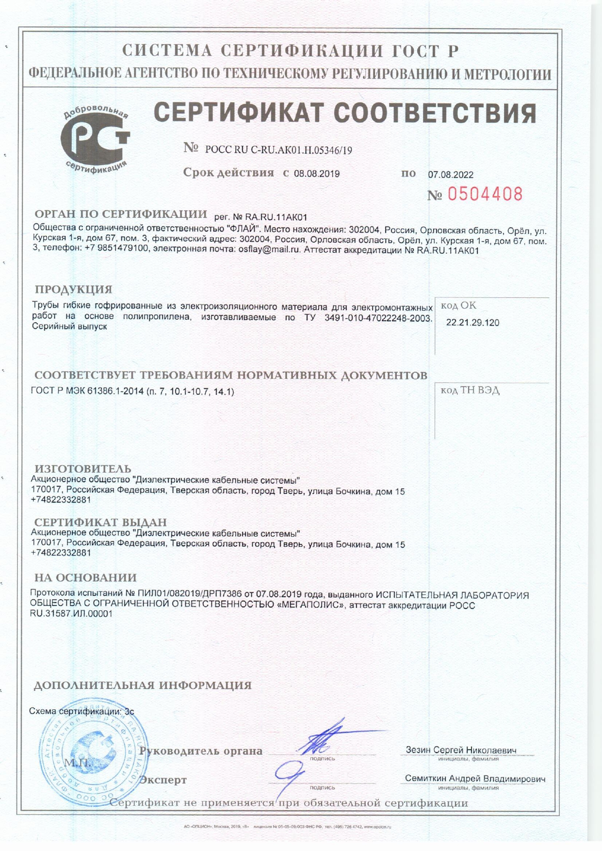 Сертификат Труба ПП гибкая гофр. д.20мм, тяжёлая с протяжкой, 100м, цвет синий