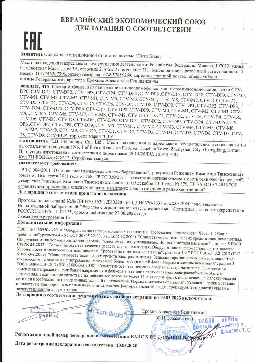 Сертификат MASTERMANN 3УТ с умным выключателем