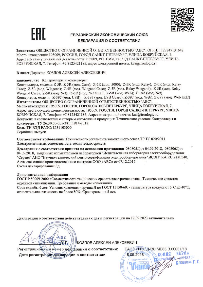 Сертификат Z-5R (мод. WiFi)