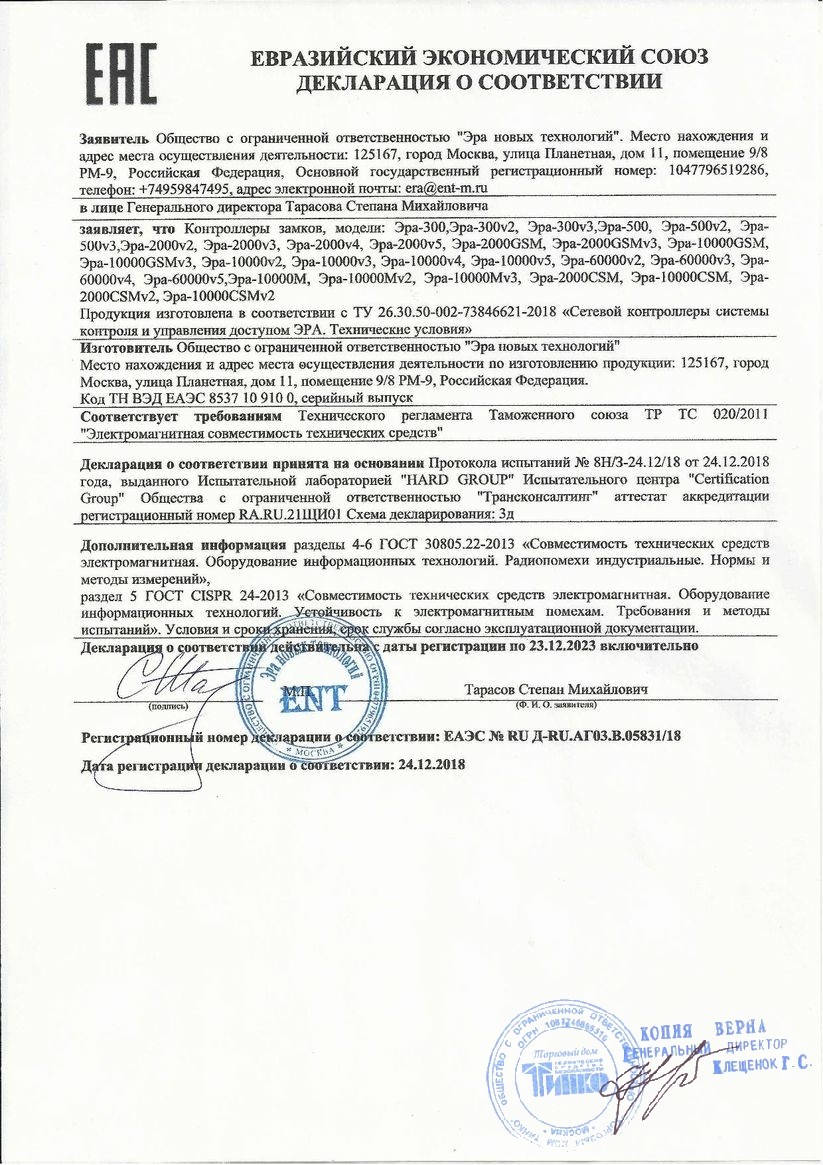 Сертификат Z-5R (мод. Net 16000)