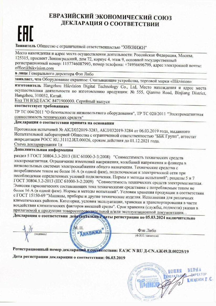 Декларация о соответствии Замок электромех-й врезной 004 (зап.часть для замка Z-Eurolock)