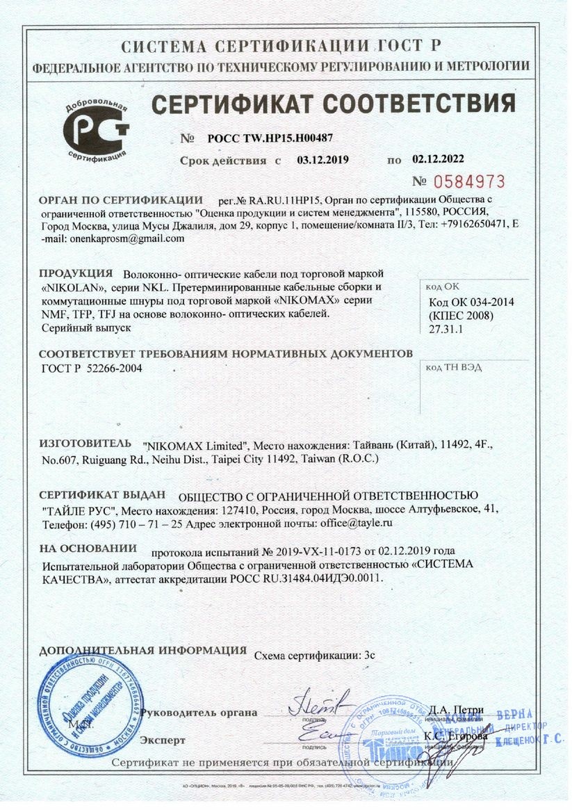 Сертификат NKL-F-008S2I-00C-BK-F004