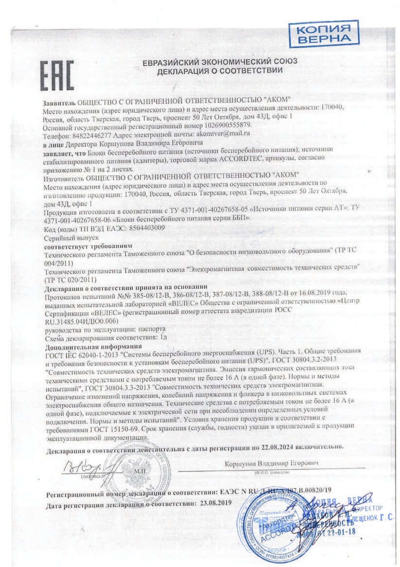 Сертификат AVP-454 (PAL)