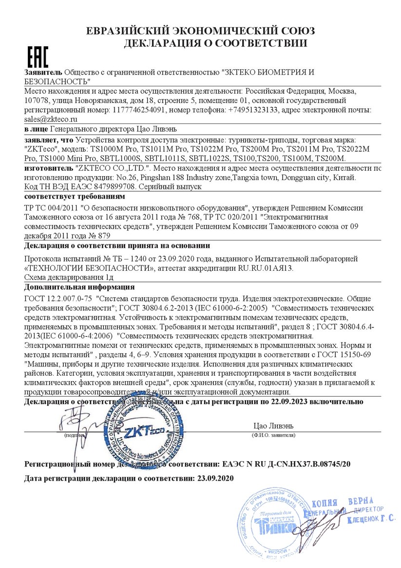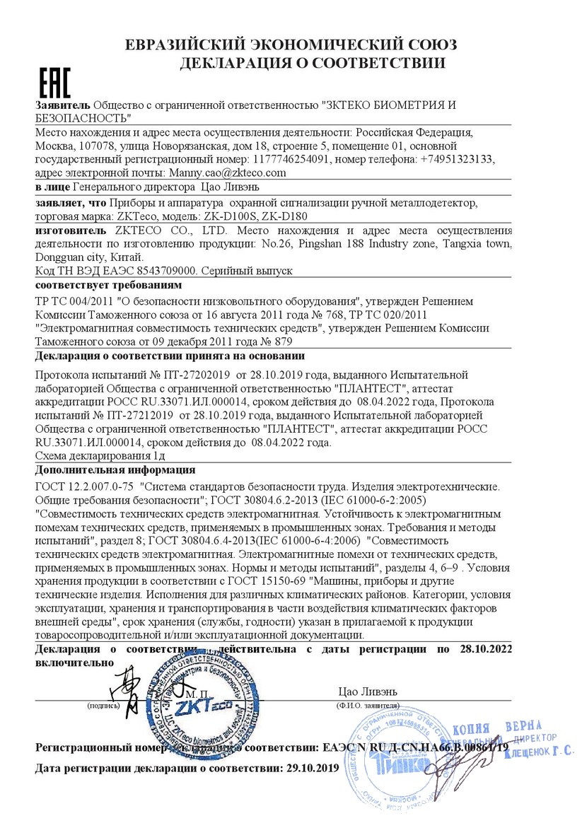 Сертификат ZK-D100S